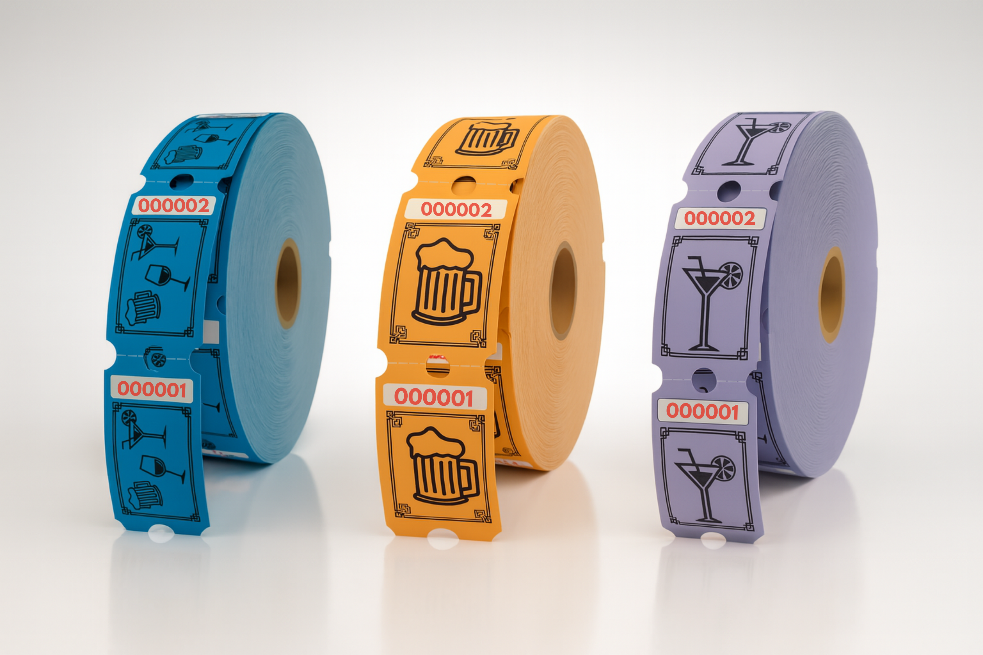Eintrittskarten, Getränkekarten und andere Rollentickets